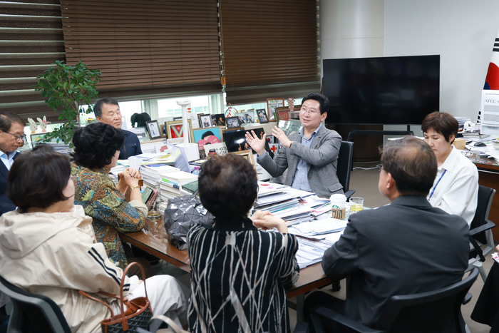이 시장은 이날 시장실을 찾은 성동마을LG빌리지1차아파트 입주자대표회의 구자훈 회장 등 주민 9명과 대화했다.